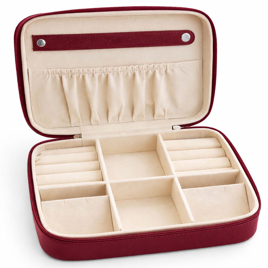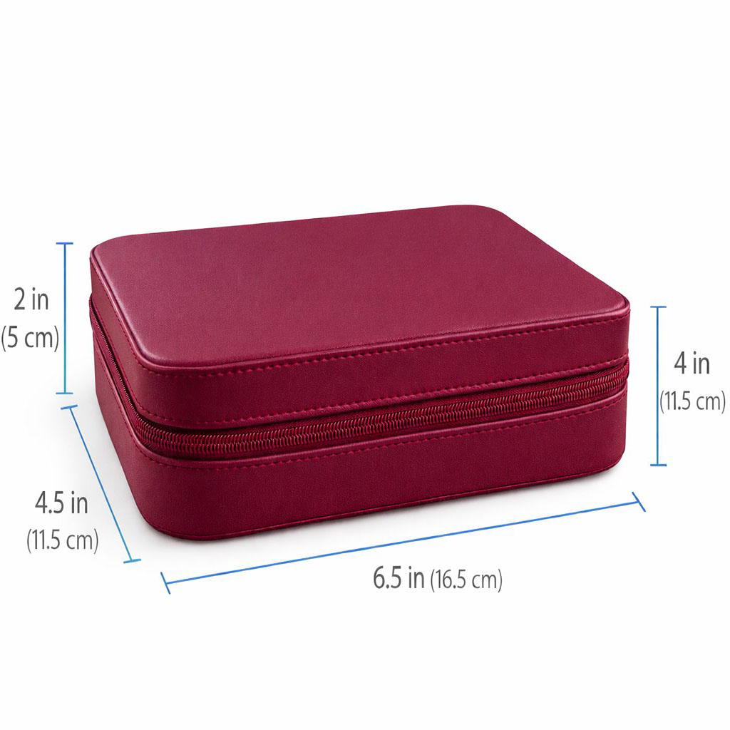The secure zipper closure ensures your valuables stay safe, while the structured design helps maintain the case’s shape. Perfect for travel or everyday organization, this jewelry box keeps your collection neatly arranged and easily accessible.
